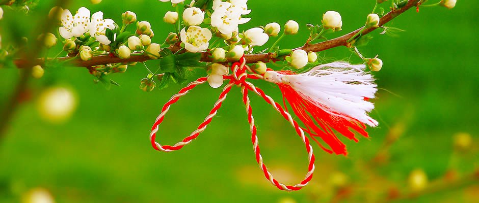 Traducerea: În Martie, se obișnuiește ca fire împletite să se dăruiască.