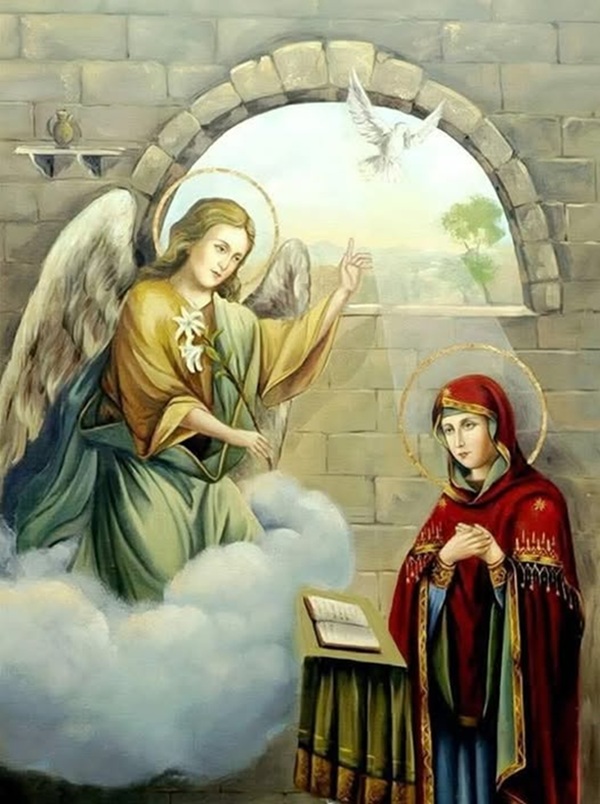 Cu respect i se închină voievodul cel ceresc:,, – Duhul Sfânt azi se pogoară peste trupu-ți feciorescNu te speria, Marie, cea aleasă-ntre alese!Căci Înaltul a Sa putere peste Tine-o s-o reverse.